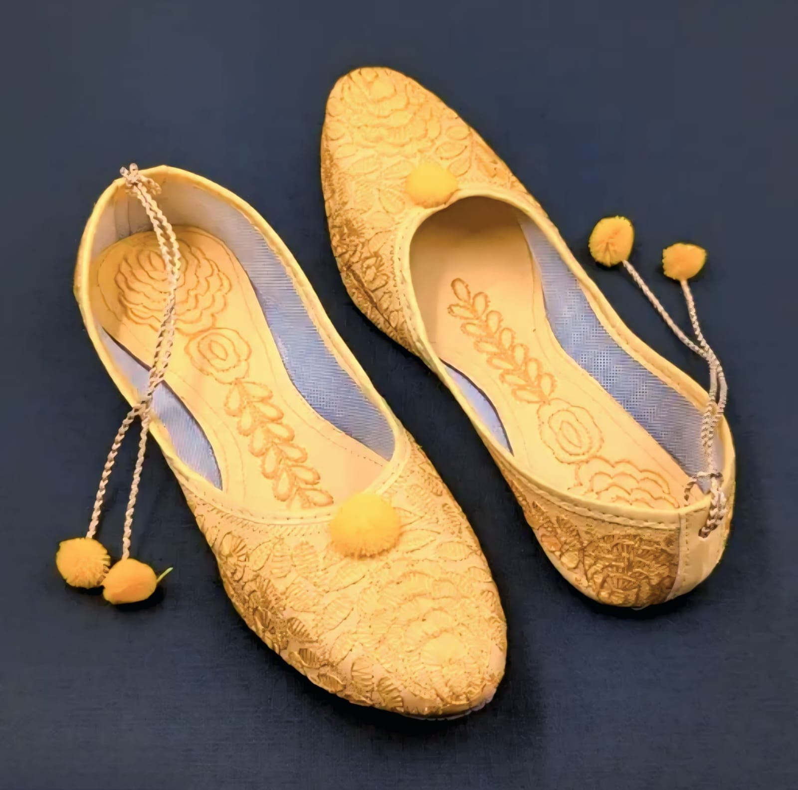 Embroidery juttis are traditional yet timeless footwear that perfectly blend culture, craftsmanship, and style, making them a must-have in every wardrobe. Originating from India, these handcrafted shoes are known for their intricate embroidery, vibrant colors, and exquisite detailing, often featuring threads, beads, mirrors, sequins, or zari work. Comfortable and lightweight, embroidery juttis are usually made with soft leather soles and fabric uppers, allowing for all-day wear while keeping a chic and ethnic charm. They are incredibly versatile, complementing a wide range of outfits—from traditional attire like sarees, lehengas, and salwar kameez to modern fusion looks like skirts, dresses, and even jeans. Available in various designs, patterns, and color combinations, embroidery juttis reflect personality, artistry, and cultural heritage, making them perfect for weddings, festivals, parties, or casual outings. Their handcrafted nature ensures that each pair is unique, adding an artisanal touch to any ensemble. Lightweight yet stylish, embroidery juttis effortlessly combine comfort with elegance, making them an ideal choice for those who want to embrace tradition while staying trendy.