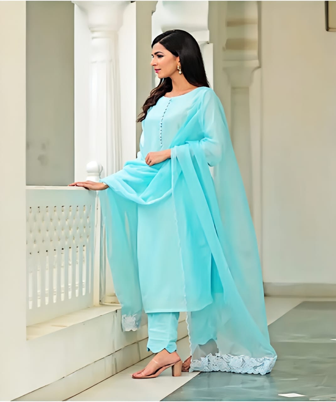 LENSYA Women’s Sky Blue Cotton Kurta Pant with Dupatta