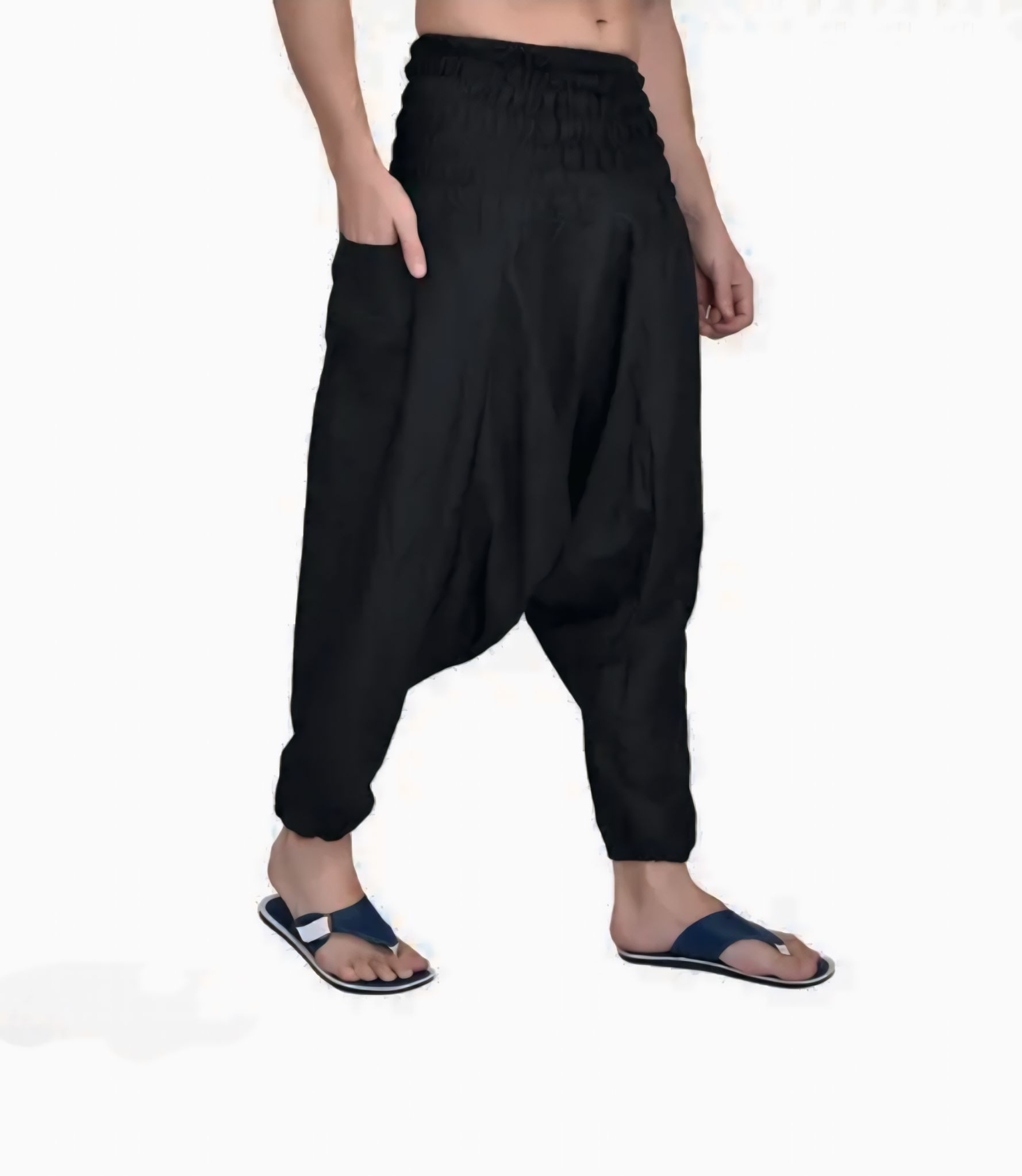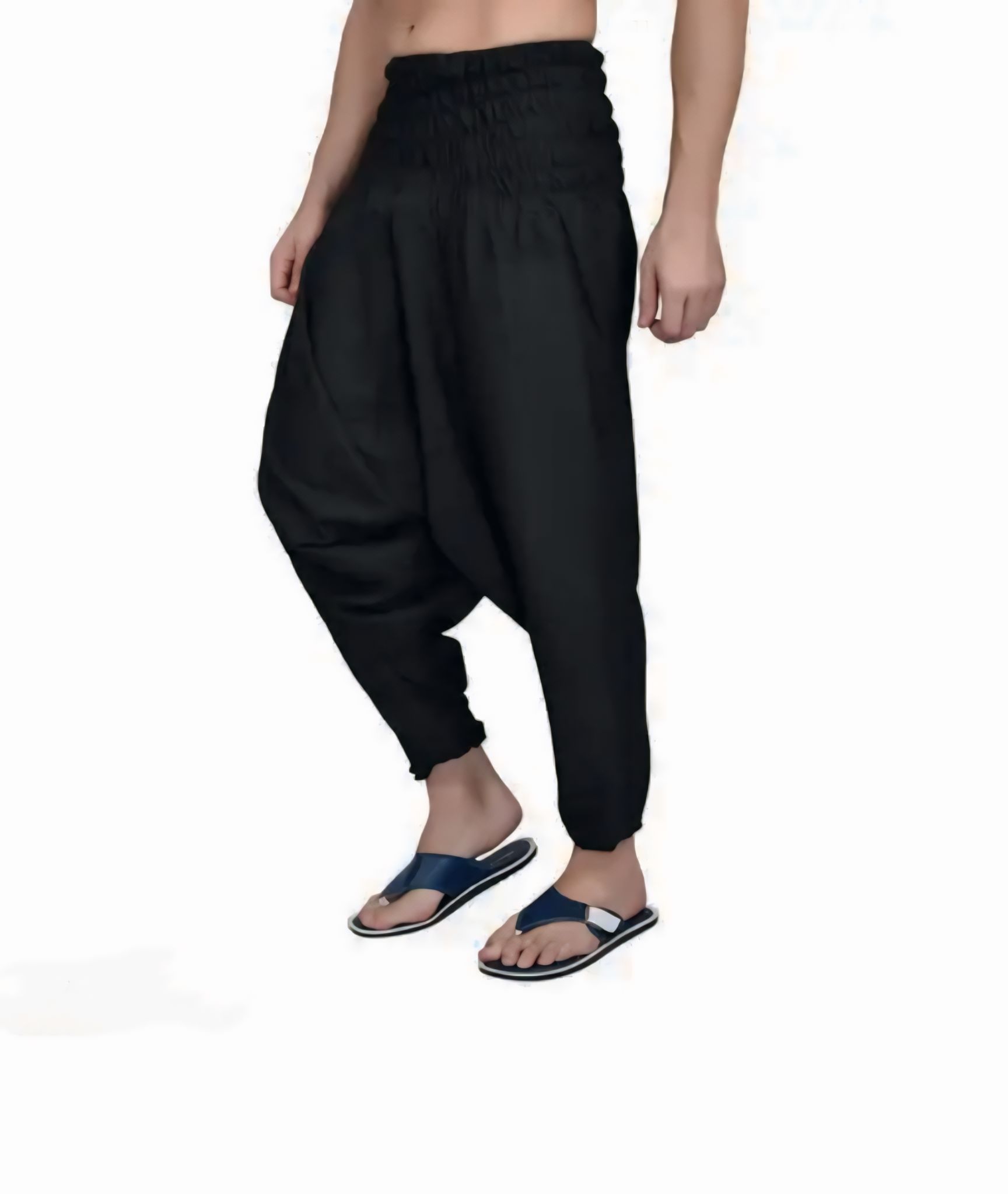 Step into effortless style and comfort with Viku Men’s Rayon Harem Pants in Black, designed for men who appreciate relaxed fashion with a contemporary edge. Made from soft, breathable rayon fabric, these harem pants offer a lightweight feel and smooth drape that keeps you comfortable all day long. The relaxed fit with a tapered ankle design allows easy movement while maintaining a stylish silhouette. Featuring an elasticated waistband for a secure yet flexible fit, these pants are perfect for casual outings, travel, lounging, yoga, or streetwear looks. The versatile black color adds a bold, modern touch and pairs easily with t-shirts, kurtas, or hoodies, making these harem pants a must-have for a laid-back yet fashionable wardrobe.