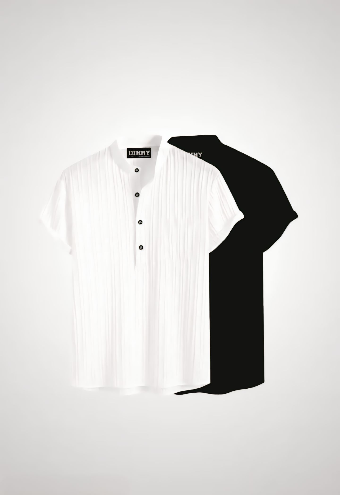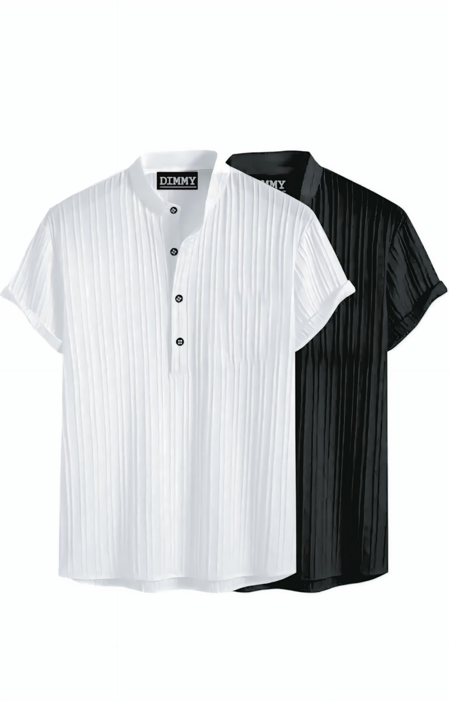 Woxen Men’s Premium Ribbed Henley Neck Half Sleeve T-Shirt Stylish Casual Solid Color T Shirt for Boys & Men | Pack of 2 (White & Black)